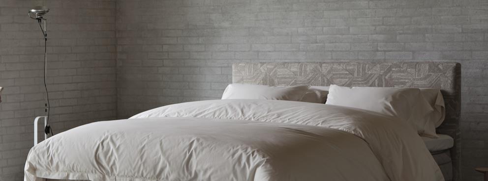 Eden est une tête de lit en tissu doux pour le lit DUX avec une signature simple mais sophistiquée, en forme de nœud.